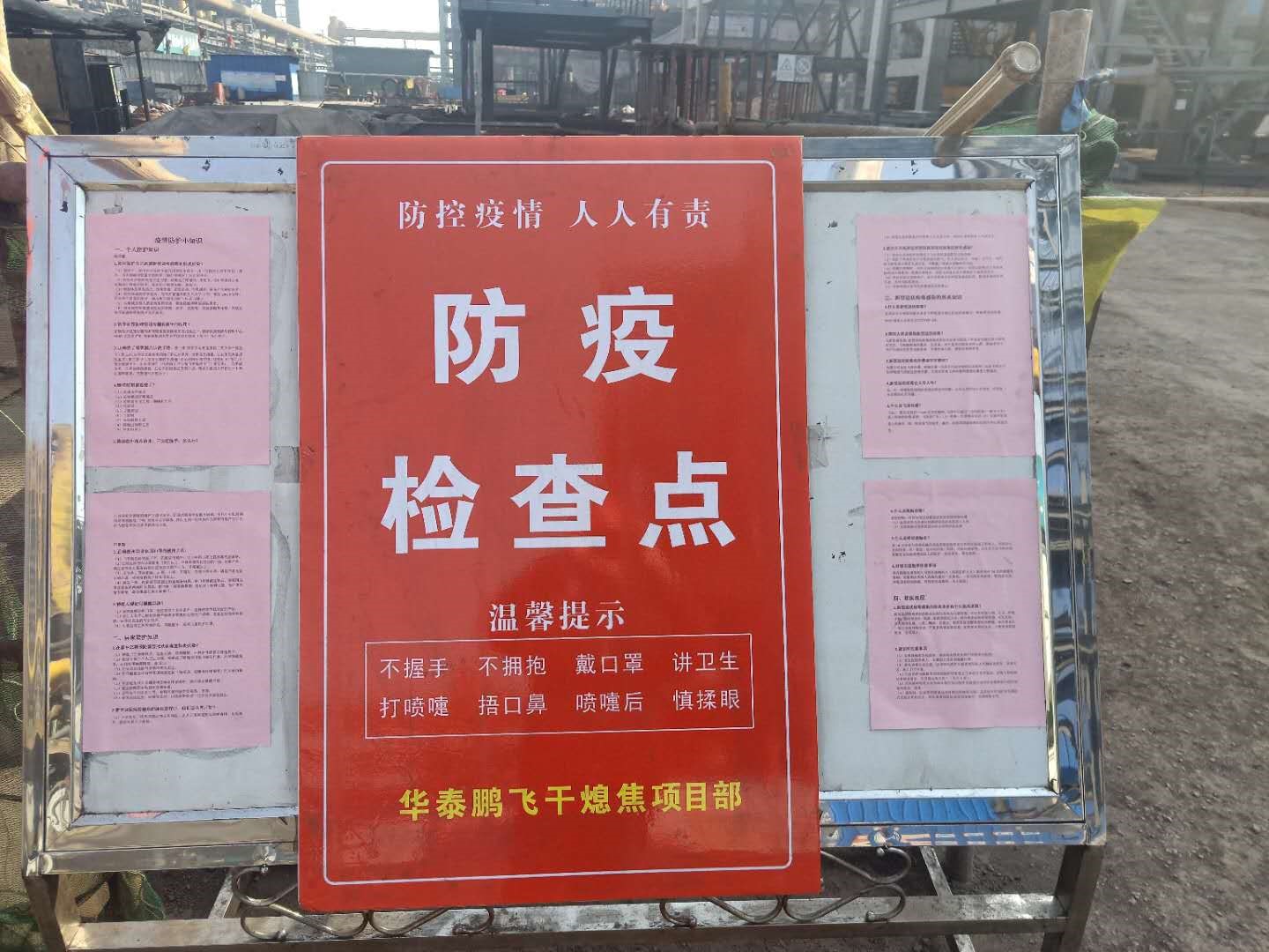 山西孝义鹏飞项目部的疫情防控标语