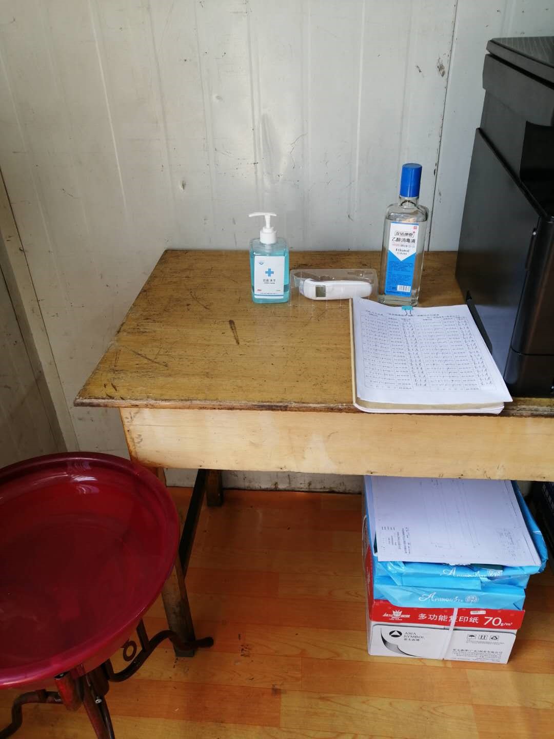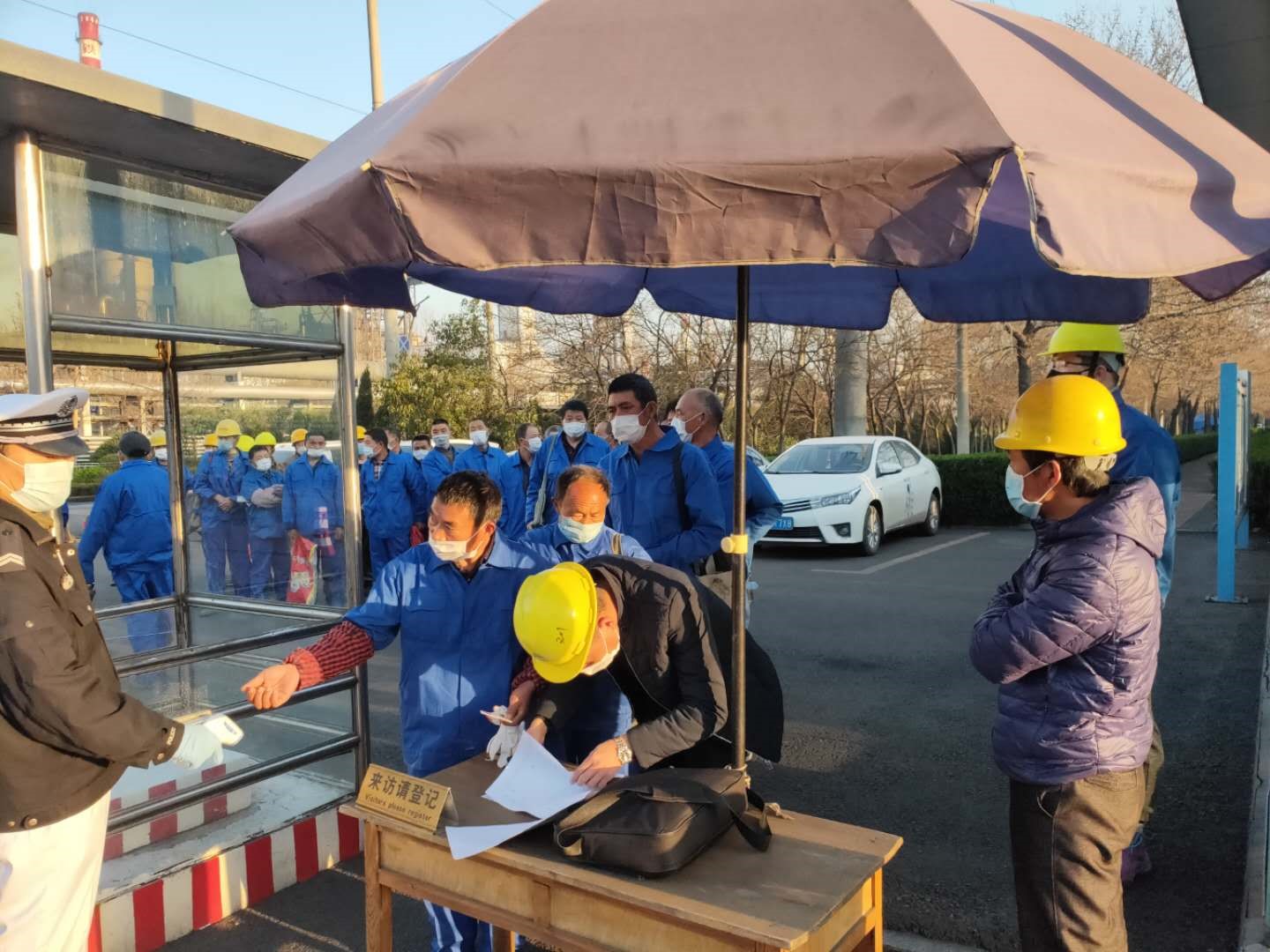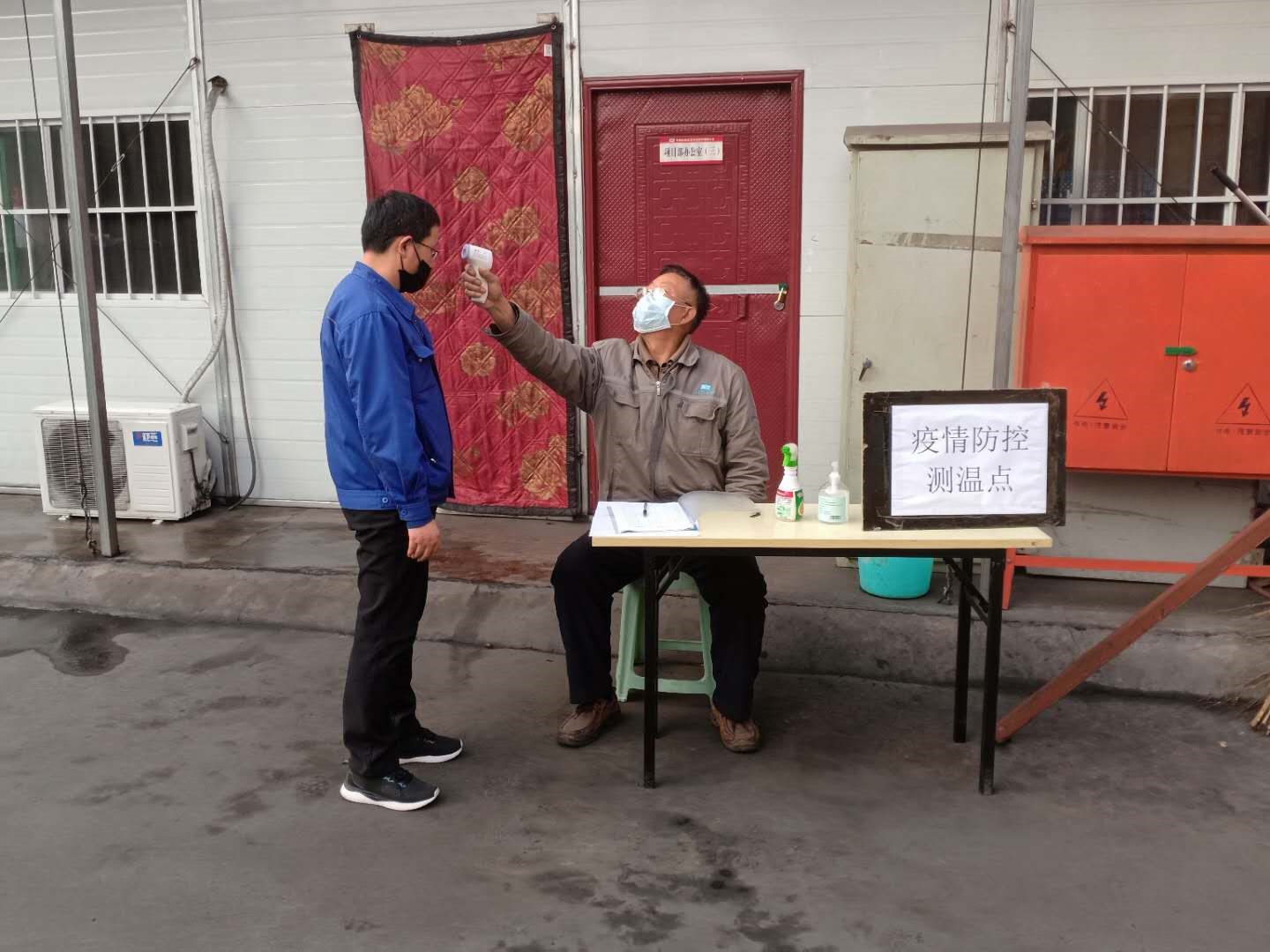 宝烨项目部防疫物品和施工单位人员现场测温