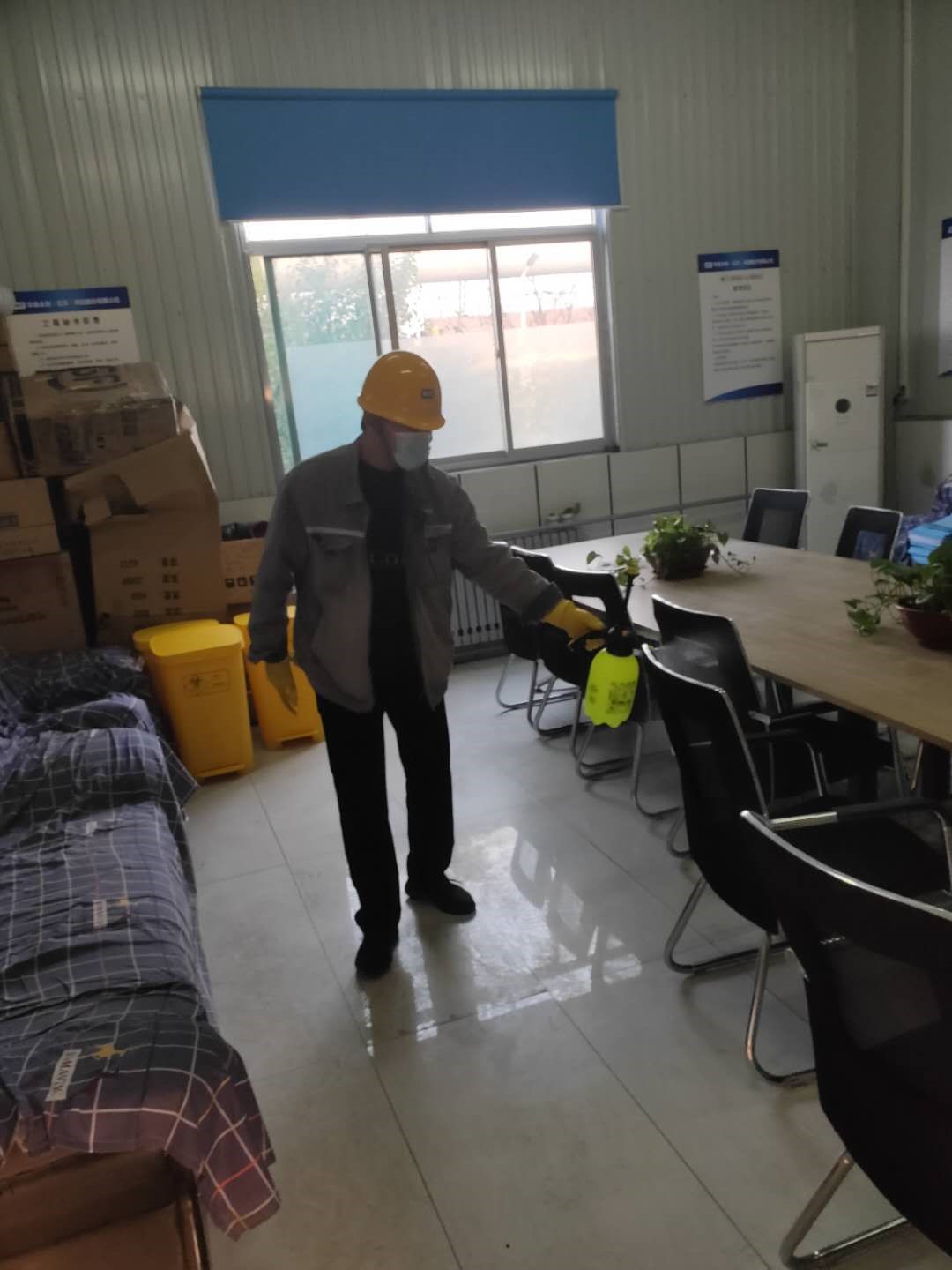 山东铁雄冶金项目部每日为办公室消毒