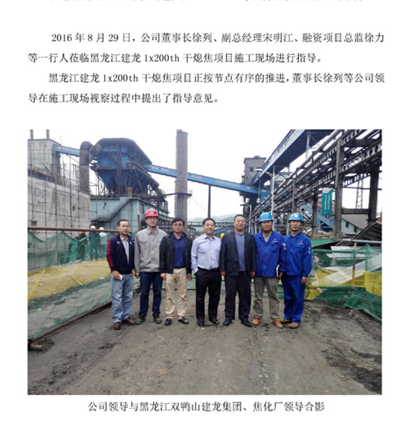 董事长徐列莅临黑龙江双鸭山建龙1x200th干熄焦项目施工现场
