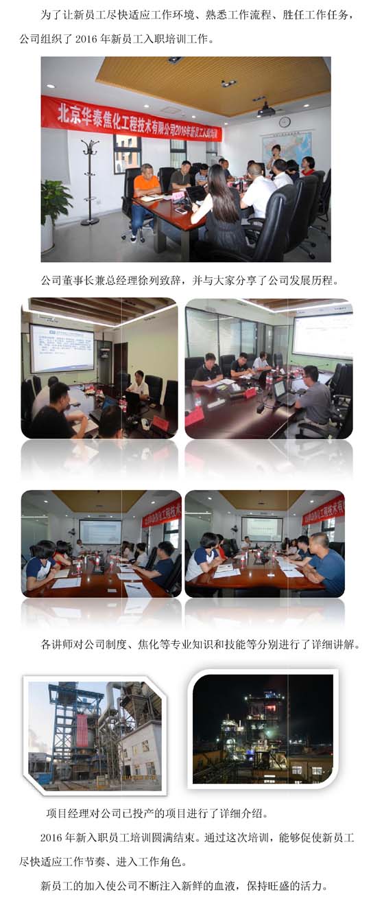北京15vip太阳集团官网焦化2016年新员工培训