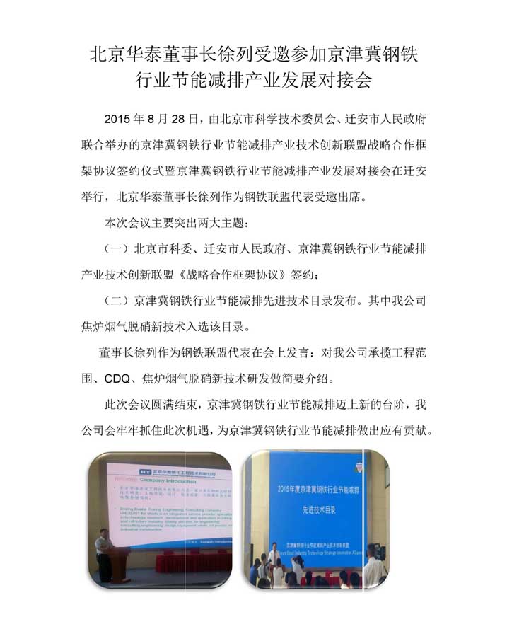 北京15vip太阳集团官网董事长徐列受邀参加京津冀钢铁行业节能减排产业发展对接会